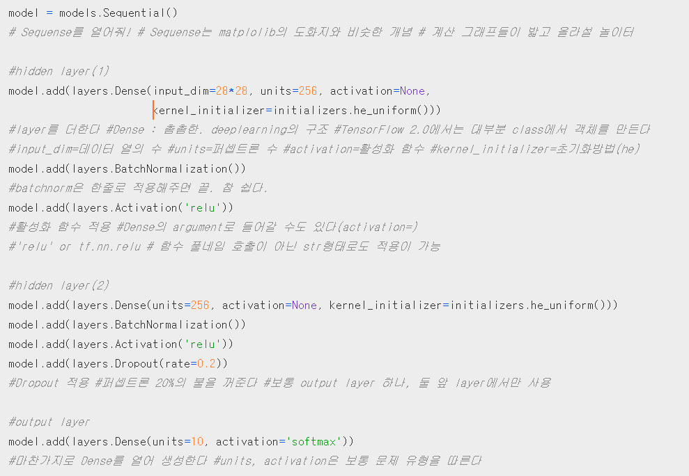 #layer 생성 : 차원 생성(차원을 맞추는 것이 무척 중요) -> 활성화함수 적용