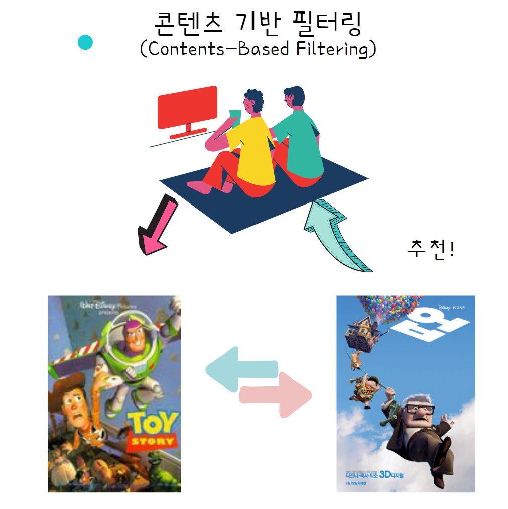 누군가 토이스토리(ToyStory)를 좋아한다면 토이스토리와 비슷한 영화, 여기서는 업(Up), 업을 추천하면 되는 거다.