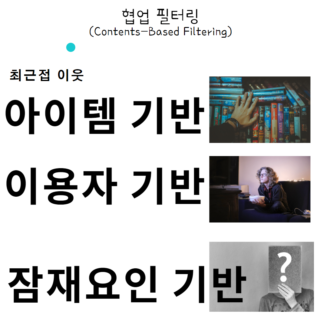 여러 블로그, 기사, 논문 등을 읽으며 개인적으로 간단히 취합한 장단점이다. 생각해보자면, 어려운 조건을 갖춰낸다면 나름 더 명확한 추천을 해줄 수 있는 녀석이다. 난이도가 높은 조건은 결국, '데이터'.